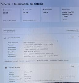 Vendo computer desktop Hp Mod. Hp Prodesk 600 G2 SFF Processore Intel i5 6500 Core 4 3.20 GHz RAM IPERX FURY 8 GIGA DDR4 2666 MHz SSD SK 256 GIGA Sistema operativo Windows 11Pro 64bit aggiornato. Cavo alimentazione.