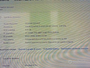 cpu i5 3,00 GHz, RAM 8 GB DDR3, SSD 512 gb, lettore Memory card. Windows 11 pro attivato.