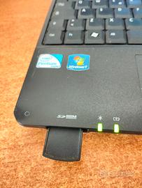 Pc funzionante, un po' lento. Funziona esclusivamente con la batteria legata all'alimentazione (l'alimentatore non è in dotazione). Il pc presenta un alloggio per SD, lettore CD e porte USB oltre alla possibilità di poter collegare fisicamente le cuffie e il microfono.
