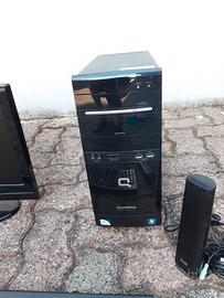 Computer Compaq fisso senza sistema operativo formattato con accessori : monitor, tastiera, casse, telecomando, mouse, woofer