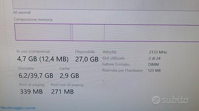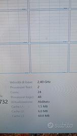 Computer fisso con scheda server, composto da 32gb di RAM 2x16gb ddr4 2666mhz reg-ecc espandibile sino a 256gb ha 8 pocket per la ram, 4gb di scheda grafica con 6 uscite video in 4k e possibilità di montare sino a 3 schede grafiche in pcie 16x in parallelo più due porte pcie 1x, monta doppia CPU intel xeon e5 con 12core e 24 thread ognuna raffreddate a liquido ogni radiatore ha due ventole,