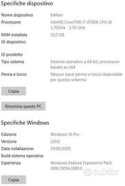 Tutto il computer è programmabile con illuminazione RGB a piacimento (scheda madre, GPU, ventole, dissipatore, RAM) tramite i rispettivi software. Attualmete è installato Windows 10 Pro ma, su richiesta, potrei venderlo anche con Windows 11.