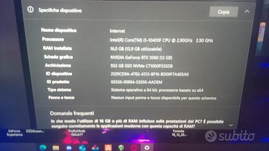 PC fisso da gaming dal prezzo trattabile Intel Core i5 Scheda video GeForce RTX 3060 16 GB RAM 1 TERA