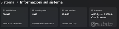 GPU Nvidia RTX 3060ti con 8GB di vRam, scheda ottima e ancora capacissima di far girare qualsiasi gioco in 1080p a dettagli alti e fps rocciosi.