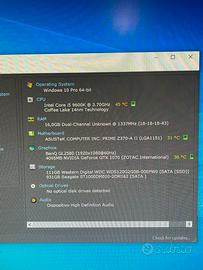 vendo computer da gaming per inutilizzo , tutto compreso CPU Intel Core 15 9600K © 3.70GHz RAM 16,0GB Dual-Channel Motherboard ASUSTEK COMPUTER INC. PRIME 2370-A II Scheda grafica 4095MB NVIDIA Geforce GTX 1070 (ZOTAG International)