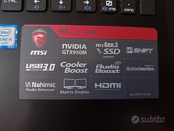 Vendo portatile gaming MSI gl62 6qe, perfettamente funzionante, non usurato. Dotato di 3 entrate USB, 1 entrata hdmi, lettore CD, microSD. Prezzo trattabile
