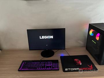 Computer da gaming con postazione , tastiera e mouse, monitor acer 75Hz, computer da gaming con GEFORCE RTX 3060, 16gb ram, 500gb di SSD (memoria), e processore AMD RYZEN 5 5600G, 7 ventole di raffreddamento, 6 prese USB.