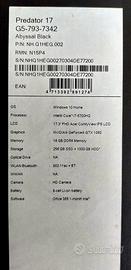COMPUTER GAMING PORTATILE ACER PREDATOR 17