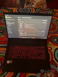 Vendo MSI GF65 Thin 10EU, un laptop ad alte prestazioni adatto sia per gaming che per utilizzo professionale, come CAD e grafica.