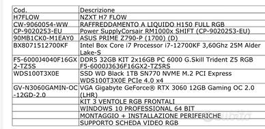 vendo bellissimo computer da gaming con schermo MSI 27 pollici 180 hz come nuovi, il computer monta: NZXT H7 FLOW RAFFREDDAMENTO A LIQUIDO CORSAIR ALIMENTATORE 1000 ASUS PRIMA Z790-P INTEL I7-12700KF DDR5 32 GB CORSAIR RGB SSD 1 TERA SCHEDA VIDEO RTX 3060 12GB OC 2.0 VENTOLE FRONTALI CORSAIR RGB SUPPORTO SCHEDA VIDEO RGB