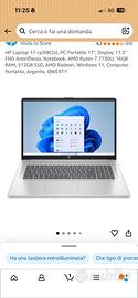 HP Laptop 17-cp2003sl, PC Portatile 17", Display 17.3" FHD Antiriflesso, Notebook, AMD Ryzen 5 7520U, 16GB RAM, 512GB SSD, AMD Radeon, Windows 11, Computer Portatile, Argento, QWERTY Computer come nuovo, usato meno di 12 ore, preso per un lavoro online non andato a buon fine. Vendesi per inutilizzo.