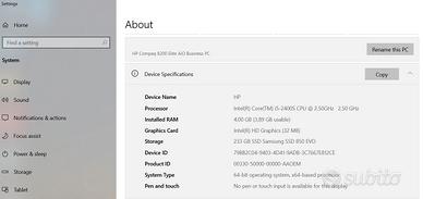 Vendesi computer HP Compaq 8200 Elite AiO Business PC, processore Core i5, SSD da 240 GB, Windows 10 PRO, schermo da 23", risoluzione max 1920 x 1080, lettore memory card, masterizzatore CD / DVD, perfettamente funzionante. Prezzo escluso di tastiera e mouse.
