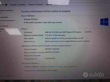 Vendo computer hp ,azzerato, come nuovo, impeccabile !! PROCESSORE AMD A8 7410 2 20 GHZ RAM 12 GB SSD 256GB WIN 10 HOME con alimentatore compreso, senza batteria, vera, prezzo leggermente trattabile occasione, come nuovo!!!