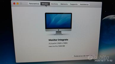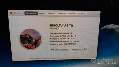 PC fisso Apple iMac 21.5, Intel i5, disco 1Tb, RAM 8Gb, OS sierra late 2013, completo di tastiera USB e mouse Apple USB, eccellente. Solo ritiro diretto dopo visione e prova.