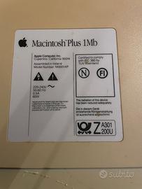 Machintosh del 1990 funzionante, con HD esterno 20 MB, tastiera e mouse. Il computer sembra funzionare, ma lo schermo, data l'età, non si accende