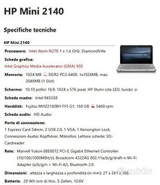 computer mini HP 2140 con piccolo segno vicino alla tastiera come in foto Specifiche in foto