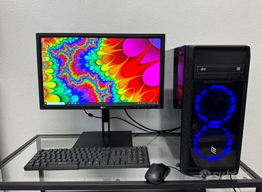 PC CON CASE RGB DOTATO DI PANNELLO LATERALE IN VETRO TEMPERATO, DUE VENTOLE FRONTALI RGB BLU, PROGETTATE PER GARANTIRE UN OTTIMO FLUSSO D’ARIA E MANTENERE SEMPRE IL SISTEMA A TEMPERATURE OTTIMALI. IL CASE PRESENTA QUALCHE NORMALE SEGNO DI USURA, MA IN BUONE CONDIZIONI ESTETICHE GENERALI ED È PERFETTAMENTE FUNZIONANTE.