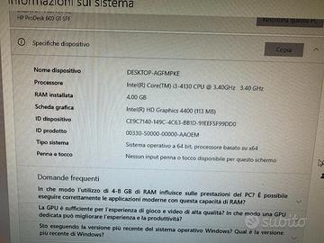 Pc usato poco solo per ufficio. Vendo completo di tastiera - mouse - monitor.