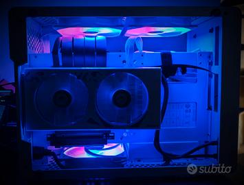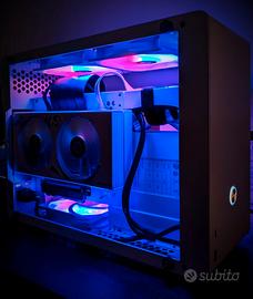 Computer da gaming assemblato con componenti nuove. Piccolo ed elegante, in formato ITX, con doppio vetro temperato ed illuminazione RGB sincronizzabile.