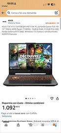 ASUS TUF Gaming A15 FA506QM-HN080W 5800H Computer portatile 39,6 cm (15.6") Full HD AMD Ryzen™️ 7 16 GB DDR4-SDRAM 512 GB SSD NVIDIA GeForce RTX 3060 Wi-Fi 6 (802.11ax) Windows 11 Home Nero Schermo 144hz Come nuovo , acquistato con scopo di gaming fuori casa , e usato a malapena Scatola originale disponibile Motivo di vendita : upgrade