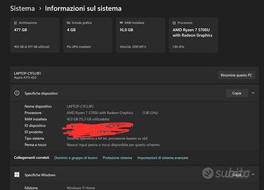 Processore AMD Ryzen 7 5700U with Radeon Graphics (1.80 GHz)