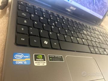 Vendo computer portatile Acer Aspire 5750, schermo LCD nuovo appena sostituito; 640 giga di Hard disk WD per archiviazione; licenza originale Windows 10, caricatore nuovo appena comprato incluso nel prezzo. Pc molto fluido, ideale per internet, film, scuola e lavoro. Batteria in buono stato. Pc usato poco, scocca e tastiera come nuovi.