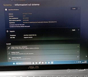 Vendo portatile ASUS VivoBook X515JF, in ottime condizioni e perfettamente funzionante. Monta Intel Core i7, 8GB di RAM, disco SSD da 238GB e scheda grafica NVIDIA dedicata da 2GB. Sistema operativo Windows 11 Home. Ottimo per studio, lavoro, navigazione e gioco di titoli meno recenti. Batteria ancora in buono stato. Prezzo 500€ trattabile.