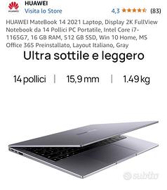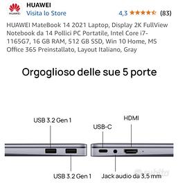 14 pollic Display Full View, anno 2021 , Intel core I7 , 16 GB ram, 512 GB SSD , schermo multitouch ad alta precisione .