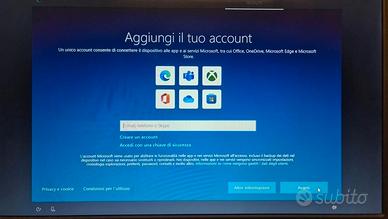 Portatile hp 250 g3 usato. 8 gb di RAM SSD da 512 gb Per motivi di privaci Windows 10 è stato resettato/ripristinato per cancellare tutti i dati personali. Quindi all'accensione dopo avere risposto alla domanda zona di utilizzo ed avere selezionato il tipo di tastiera (Italiana o altro) comparirà la schermata dell'accesso a Microsoft, come da foto, dopo di che creato il pin di accesso sarà pronto per funzionare. Schermo e tastiera in ottime condizioni Le macchie chiare, visibili nelle foto, sono dovute ad un maldestro tentativo di incollare il supporto inferiore, dove è attaccato il gommino, dato che la vite non teneva, fissato ora con del biadesivo. Anche sul lato del DVD ci sono delle macchie sempre dovute allo stesso motivo, ma è tutto perfettamente funzionante. Aggiungo una chiavetta Tp-link che mi serviva per migliorare la connessione wifi. La batteria ha una buona durata, dipende dall'utilizzo. Il prezzo tiene conto delle condizioni del pc, per questo non è trattabile. Preferirei consegna a mano così da potere constatare il corretto funzionamento e le condizioni descritte.