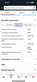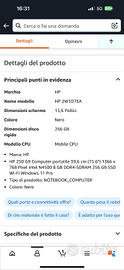 Vendo computer portatile causa inutilizzo, specifiche tecniche in foto