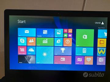 Computer portatile Asus datato, che funziona solo con cavo (molto usato). Le caratteristiche si vedono in foto. Sistema touch disposto sotto la tastiera