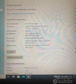 Mini hp 10.1 batteria ottima , processore intel 2 Gram 32 g memoria espandibile tramite sd , 1 porta usb . Il pc funzionanperfettamnte con la sua tastiera che ce in dotazione , sarebbe touch ma avendo uno fisciatura su display nn va touch , ma nn compromette la sue funzioni , io usavo come tablet usufruendo di un mause senza fili , in foto si vede la venitaura del display