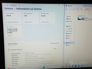 Vendo computer portatile usato perfettamente funzionante il PC e grande da 15,6 pollici led full hd 1920x1080p , 16 Gb ram ddr4 , Ssd m2 256 GB di memoria ,scheda video nividia GeForce 940MX 4 gb vram dedicato video , windows 11 ultimo aggiornamento 25H2 , processore Intel core i7-7500U 2.90 ghz wifi, Bluetooth , webcam, lettore dvd masterizzatore, lettore Micro sd, hdmi ,Google Chrome e tutti suoi programmi .