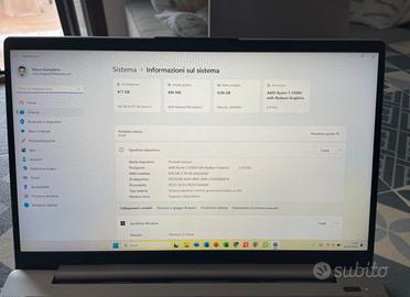 Computer Portatile PC Lenovo Ideapad 5 (Ryzen 5 5500U) 8GB di RAM e 512 di SSD, leggermente ammaccato nell'angolo superiore sinistro e presenta qualche imperfezione sulla parte superiore della scocca, ma per il resto rimane in ottime condizioni. Sistema operativo Windows 11 Home x64. Fornito con caricatore 95w originale. Computer ottimo per lavoro da casa, pacchetto office, scuola e intrattenimento. Per fare montaggio foto/video occasionale il computer funziona anche discretamente.