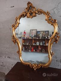 consolle e specchio antico in foglie d'oro