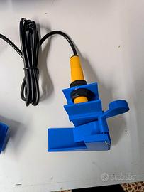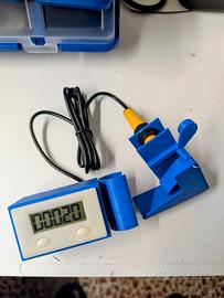 Conta colpi per pressa Dillon 750/650, si applica e rimuove alla fine dello scivolo di uscita, contando effettivamente i colpi finiti . Il display si monta facilmente sul tubo principale della pressa, oltre al conteggio c'è un pulsante per resettare e un altro con funzione on-off, viene alimentato con batteria AA (inclusa).