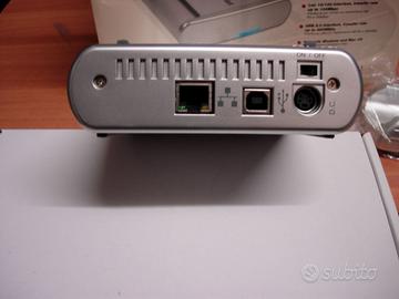 Vendo contenitore esterno per hard disk da 3,5” pata usb 2 e interfaccia lan 10/100 usato pochissimo con alimentatore e cavi di collegamento.