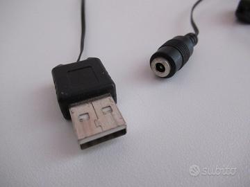 Cavo della lunghezza di 78cm che converte una presa USB 2.0 maschio in una presa DC femmina per poterci poi collegare a sua volta un convertitore per collegarsi a più dispositivi. Disponibilità ad avere anche sostituzioni di alcuni convertitori (inclusi nella confezione). Il prodotto è in buono stato. Disponibilità a spedire (come indicato) o ad incontrare l'acquirente. Per altre informazioni basta contattarmi.