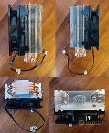 Vendo dissipatore per CPU Cooler Master Hyper 212 EVO, in ottime condizioni. Nessun danno, ventola pulita e cuscinetti in perfetto stato. Pronto all’uso. Ottimo raffreddamento e bassa rumorosità: ideale per PC gaming e workstation. Mantiene temperature stabili anche sotto carico. Specifiche tecniche: - Dissipatore con 4 heatpipes in rame a contatto diretto + pacco radiante in alluminio - Compatibilità CPU: * Intel: LGA 2011 / 1366 / 1156 / 1155 / 775 * AMD: FM1 / AM3+ / AM3 / AM2+ / AM2 - Ventola Cooler Master 120mm - Velocità ventola: 600–1600 RPM (PWM) - Rumorosità: 9–31 dBA - Portata aria: 24.9–66.3 CFM - Cuscinetti: Long Life Sleeve Bearing - Connettore: 4-Pin PWM - Staffe di montaggio (multisocket) Ritiro / Spedizione: - Ritiro a mano in zona Riazzolo (Albairate, MI) - Spedizione disponibile a carico dell’acquirente