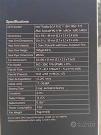 Vendo Cooler Master Hyper TX3 EVO dissipatore tower in ottime condizioni con scatola originale. Dissipatore universale molto affidabile con 3 heatpipe a contatto diretto, ventola 92mm PWM silenziosa e controllata termicamente. Compatibile con praticamente tutti i socket Intel moderni e AMD. Condizioni: Usato ma perfettamente funzionante. Nessun danno, ventola silenziosa, dissipatore pulito. Con scatola originale e tutti gli accessori di montaggio.