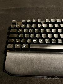 Tastiera Cooler Master mk730 perfettamente funzionante, è stata usata ma funziona come fosse nuova. Prima di spedire pulisco così torna come nuova. Switch rossi da gaming, hanno solamente qualche anno. Eventualmemte si trovano i caps a basso prezzo di ricambio ma non ne vedo necessità una volta puliti. (Nelle foto rende peggio per via del riflesso).