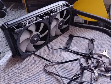 Vendo questo sistema di raffreddamento per PC. Corair H100i v2 completo di tutto. Ha anche i bracket per AM4 e AM5 (montati) oltre che al bracket per Intel. Radiatore da 240mm, rispetto alle ventole originali ho messo 2 ventole ML120 sempre corsair, silenziosissime e molto performanti.