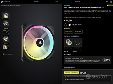 Vendo dissipatore Corsair iCUE LINK H115i RGB da 280mm nuovo e sigillato, soltanto le ventole acquistate singolarmente vengono 110€. È perfetto per processori AM5 come il Ryzen 7 9800X3D, 9700X, 9950X e in generale tutta la serie 9000/7000. Grazie al sistema iCUE Link è possibile collegarlo con un unico cavo, sistema che non si trova su brand come ASUS , MSI, Thermalright , ARCTIC ecc... Spedisco con Tuttosubito, in alternativa è possibile il ritiro a mano in provincia di Belluno, per ulteriori informazioni o dubbi non esitate a contattarmi in privato!
