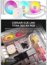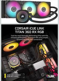 CORSAIR iCUE LINK TITAN 360 RX LCD Raffreddatore CPU a Liquido – Motore di Raffreddamento FlowDrive – Intel LGA 1851/1700, AMD AM5/AM4 – 3x RX120 Ventole RGB – iCUE LINK System Hub Incluso – Nero