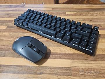 Vendo tastiera Corsair K65 PRO MINI RGB e mouse Corsair KATAR ELITE WIRELESS, entrambi funzionanti e usati pochissimo. Corsair K65 PRO MINI RGB - Switch Corsair OPX - Keycaps PBT Double-Shot - Layout QWERTY NA 65% - Retroilluminazione RGB Corsair KATAR ELITE WIRELESS - Sensore MARKSMAN 26K - 2.4Ghz SLIPSTREAM / Bluetooth - Batteria integrata - Retroilluminazione RGB - Grip claw/fingertip, simmetrico - Peso 69g