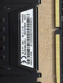 2 banchi di RAM 8Gb totali (2x4Gb) Corsair Vengeance LPX DDR4 3000 Mhz C15. Perfettamente funzionanti.