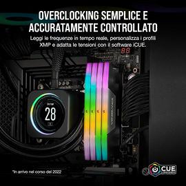 Kit di memoria Corsair Vengeance RGB DDR5 ad alte prestazioni, progettato per sistemi desktop di fascia alta. Ideale per gaming, streaming, content creation e multitasking avanzato. Dotata di illuminazione RGB dinamica personalizzabile tramite software Corsair iCUE.