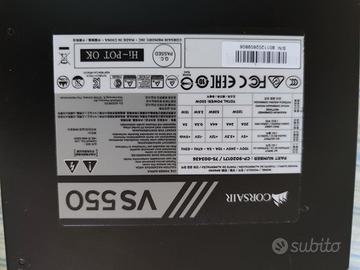 Corsair VS550 Alimentatore da 550 W, PFC Attivo, Certificato 80 PLUS, Nero, 150mm x 125mm x 86mm