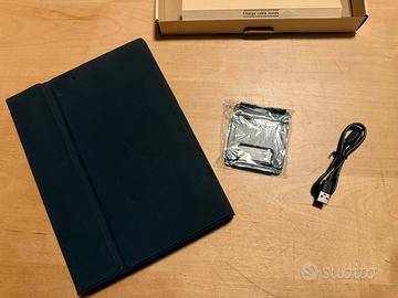 Vendo Cover con Tastiera magnetica e Touchpad per iPad 9/8/7ª Generazione 10.2, iPad Pro 10.5, iPad Air 3. Tastiera QUERTY italiana con doppio canale Bluetooth per collegarla a due dispositivi contemporaneamente (es iPad e smartphone). Colore nero. Nuova, completa di scatola, istruzioni, stand per smartphone e cavo di ricarica usb c.