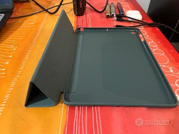 Cover ancora imballata per iPad con chip A9 e A10, colore verde scuro con interno vellutato, sicura, resistente e leggera.